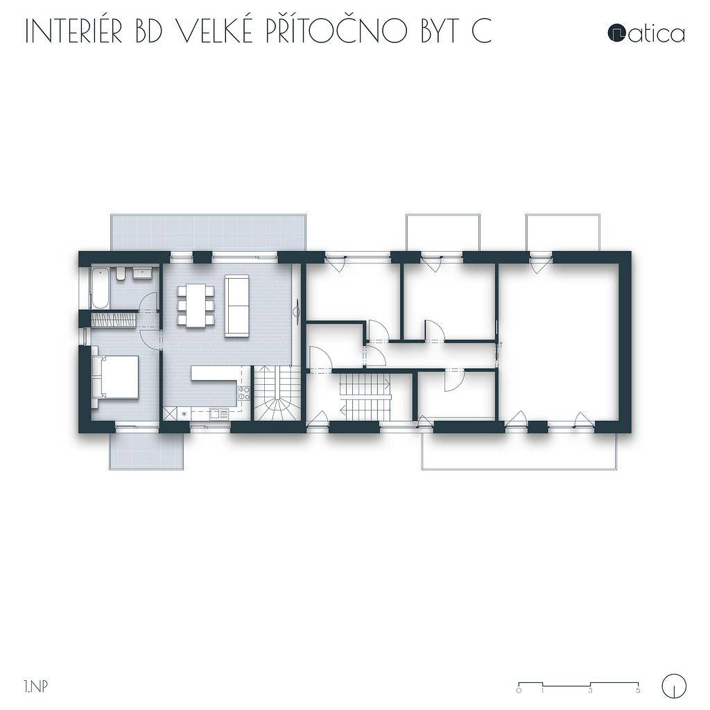 V rámci projektu bytového domu ve Velkém Přítočně jsme měli možnost navrhnout 3 byty. V návrhu jsme pracovali s obývacími prostory s propojením na terasu. Všechny byty jsou pojednány stylově s jednoduchým a účelovým designem.
